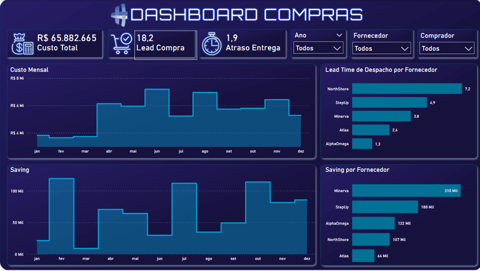 2. Economia realizada: Avalia a economia obtida através de negociações com fornecedores em comparação com os preços de compra padrão.